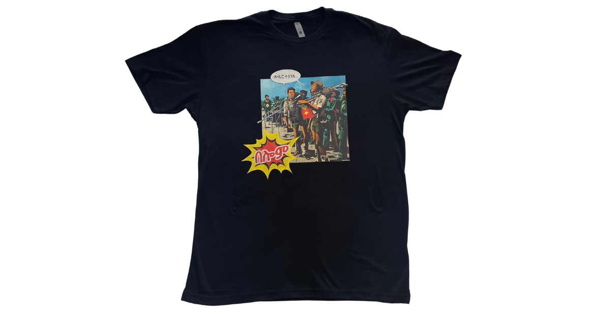 This Tee highlights the origins of the beloved Tigrayan revolutionary song “Wufer Tebeges” that is still played through the airwaves indicating that victory news would be transmitted.